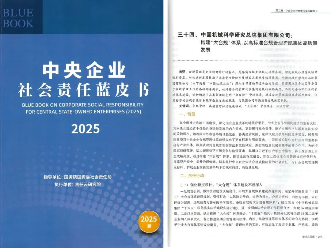 會(huì )上,《中央企業(yè)社會(huì )責任藍皮書(shū)(2025)》正式發(fā)布,集團“構建大合規體系,以高標準合規管理護航集團高質(zhì)量發(fā)展”案例成功入選。