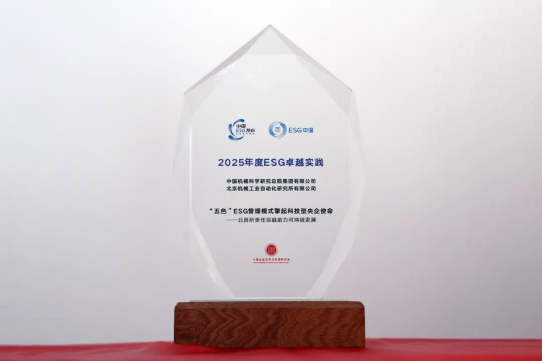 10月24日,“ESG中國·創(chuàng )新年會(huì )(2025)”在北京隆重召開(kāi)。會(huì )上發(fā)布了“中國ESG卓越實(shí)踐(2025)”企業(yè)名單,中國機械總院北自所《“五色”ESG管理模式擎起科技型央企使命——北自所責任深融助力可持續發(fā)展》案例入選。